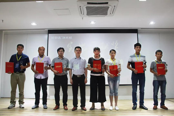 在新品發布環節,王總隆重介紹了榮事達數年磨一劍,研發出的全屋智慧凈水生態系統,這是榮事達水工業公司科研實力的一次大升級,是榮事達水工業公司國家級凈水實驗室、業內頂尖設計人才精心研發的成果,是對榮事達65周年的獻禮和向市場交出的答卷。榮事達全屋智慧凈水生態系統包括智能前置過濾器、中央凈水機、中央軟水機、大通量反滲透凈水機和智能管線機等一整套的新品設備,凝聚了十二大核心技術,以及“防爆科技”、“集成水路”、“大通量”、“小體積”等特點,提高安全性,增加人性化,充分符合城市家庭對全屋凈水的需求,受到廣大客戶的關注。其中600G智能反滲透凈水機,在不久前榮獲有凈水行業“奧斯卡”之稱的 “泰利斯”卓越產品獎。總經理王悅生介紹新品