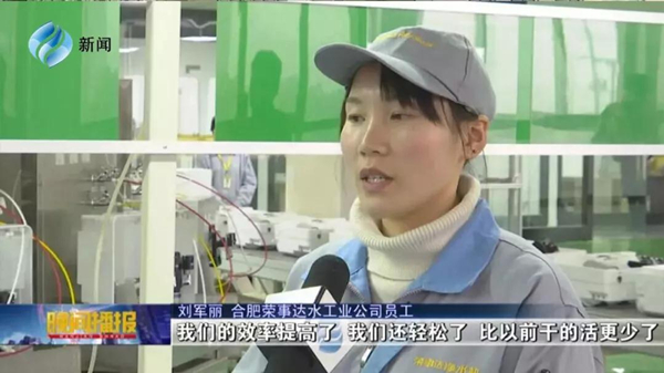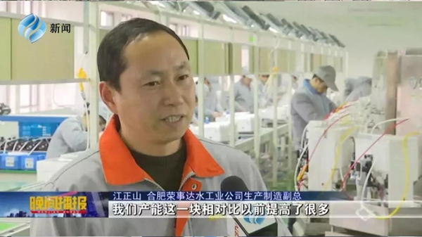 2月13日晚21時30分,合肥新聞頻道《晚間播報》節目播出新聞《人勤春來早 新車間開啟新目標》,榮事達水工業公司作為本土知名企業,在新春伊始全面開啟生產模式,公司全新投入使用的全自動智能化生產線、檢測線上已是一片忙碌景象。