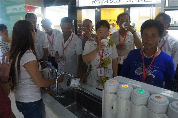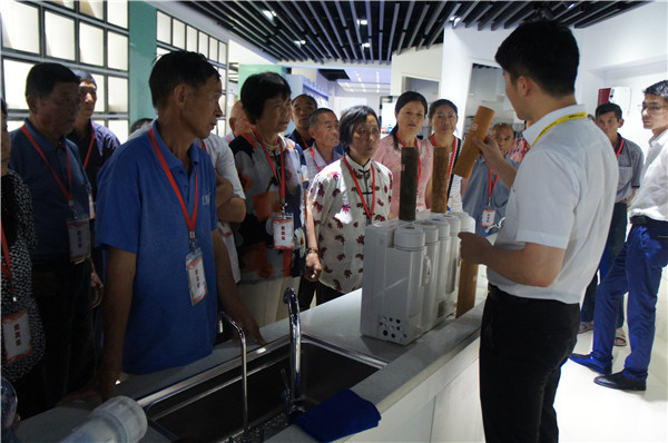 參觀中,安徽望江地區(qū)的李先生詢問(wèn)有沒(méi)有能過(guò)濾井水的產(chǎn)品,“我們家里沒(méi)通自來(lái)水,這些天連續(xù)大雨,家里井水犯渾,根本沒(méi)辦法喝。”工作人員向其推薦了專門為農(nóng)村地區(qū)研發(fā)的自吸式純水機(jī),產(chǎn)品能有效克服水壓不足、不穩(wěn)問(wèn)題,采用先進(jìn)的反滲透技術(shù)和五級(jí)過(guò)濾系統(tǒng),能夠高效濾除水中雜質(zhì),去除水垢、水堿、農(nóng)藥、化肥、細(xì)菌、重金屬等有害物質(zhì)。在展廳,消費(fèi)者切身感受了產(chǎn)品使用效果,在飲用機(jī)器現(xiàn)制的水之后,紛紛稱贊產(chǎn)品功能強(qiáng)。