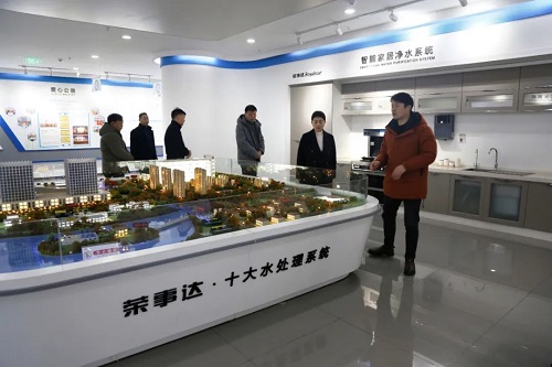 領導一行先后參觀了榮事達智能家用凈水生產(chǎn)車間和智慧水世界展廳。了解榮事達企業(yè)綜合實力及十大水處理系統(tǒng)具體發(fā)展狀況。